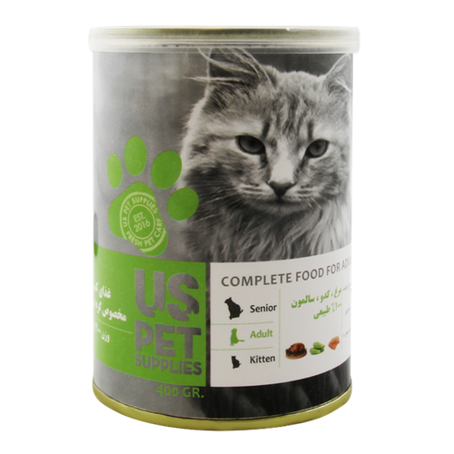 کنسرو غذای گربه یو اس پت با طعم مرغ و سالمون و کدو سبز۹۰٬۰۰۰ 5%