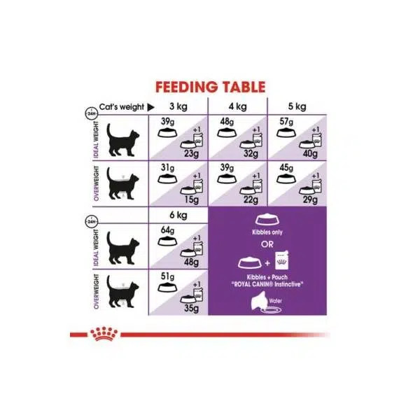قبل از عقیم سازی، سوخت و ساز بدن گربه شما با توجه به انرژی مورد نیاز متغیر خودبه خود تنظیم می شود.گربه فقط به اندازه ای که نیاز به انرژی خود را پوشش دهد غذا می خورد. پس از عقیم سازی، گربه این قابلیت تنظیم خود را از دست می دهد و بیش از حد لازم می خورد. این امر می تواند به اضافه وزن و مشکلات سلامتی منجر شود. ظرف ۴8 ساعت پس از عقیم سازی، مصرف غذای گربه 20 درصد افزایش می یابد در حالی که انرژی مورد نیاز او 30 درصد کاهش یافته است. غذای خشک گربه عقیم شده رویال کنین، مخصوص گربه عقیم شده بالای 1 سال، با ترکیب ویژه خود همه مواد مغذی مورد نیاز روزانه گربه را داشته و با چربی کم معادل ۱۲٪ و پروتئین بالا معادل ۳۷٪ در فرمول خود احتمال چاق شدن گربه را کم میکند و همچنین با میزان کافی فسفر در غذا به حفظ سلامت کلیه ها کمک شایانی می کند. این محصول حاوی ال کارتنین (L-Cartinine) ال کارتینین بوده که به متابولیسم چربی سوزی کمک میکند.
