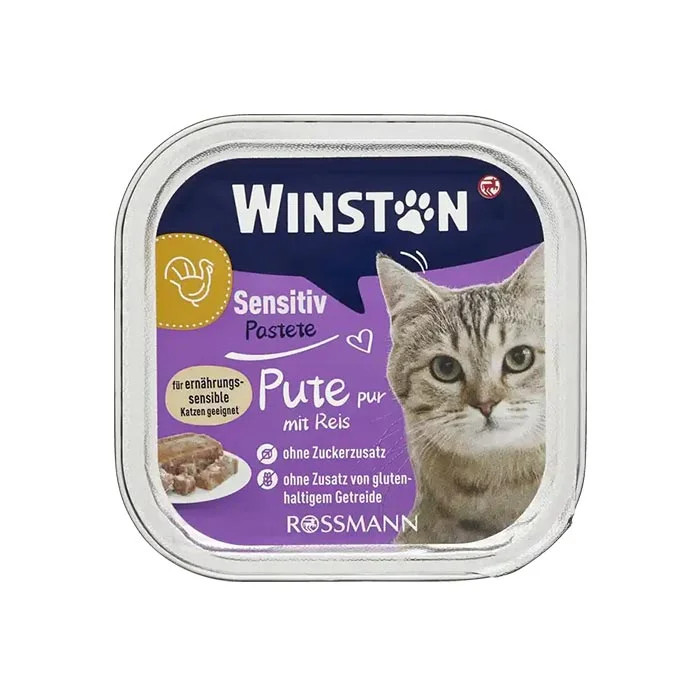 ووم گربه وینستون با طعم بوقلمون و برنج مخلوط یک غذای کامل حاوی مواد مغذی با کیفیت و بسیار خوشمزه برای گربه شما می باشد.